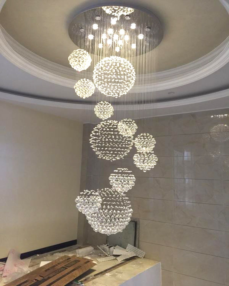 Đèn thả mâm pha lê thiết kế hình cầu xoắn ốc độc đáo, sang trọng, thích hợp sử dụng trang trí sảnh khách sạn, nhà hàng, văn phòng. Sản phẩm kết tinh từ pha lê K9 cao cấp và mâm inox tráng gương đem đến sự đẳng cấp hoàn hảo.