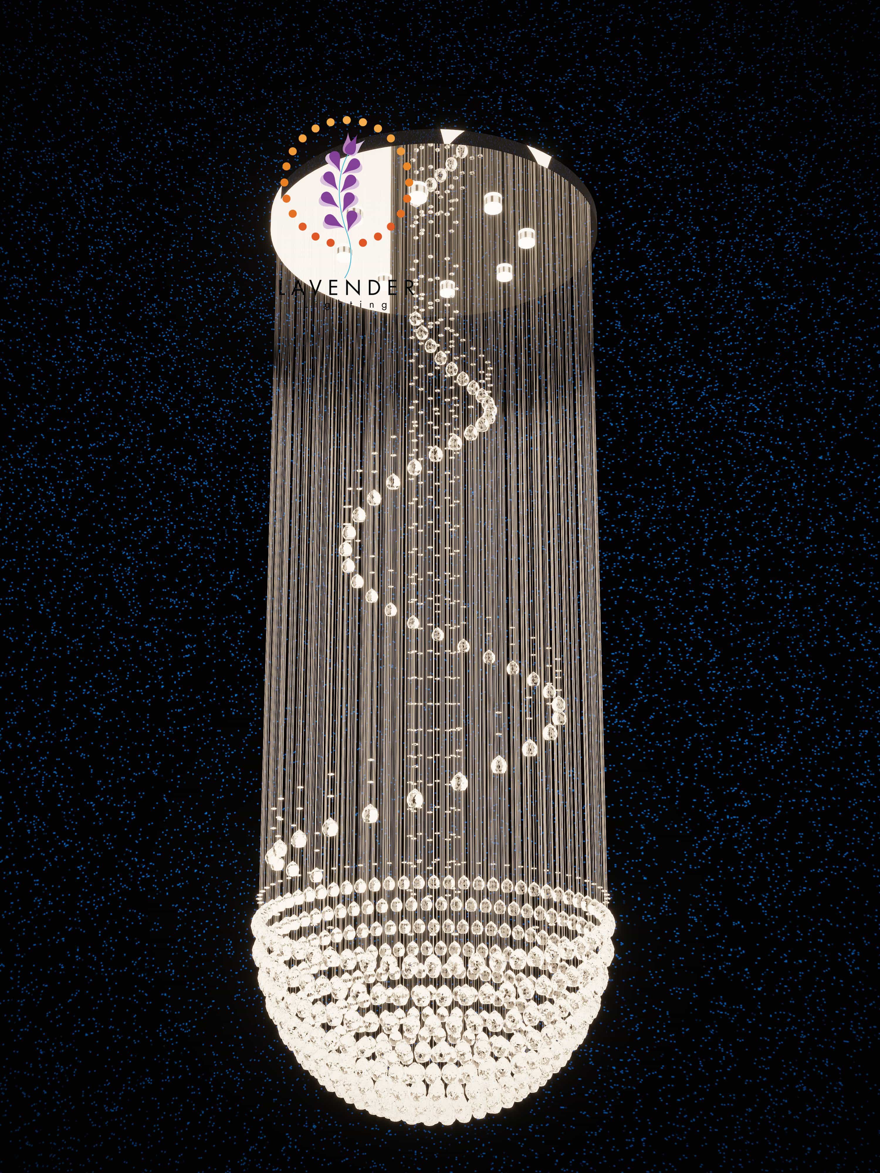 Đèn chùm mâm pha lê cầu tròn xoắn ốc ngượcvới thiết tinh tế đến từng chi tiết, chi tiết xoắn ốc ngược độc đáo, sản phẩm kết tinh từ pha lê K9 cao cấp và mâm inox tráng gương đem đến sự sang trọng hoàn hảo.