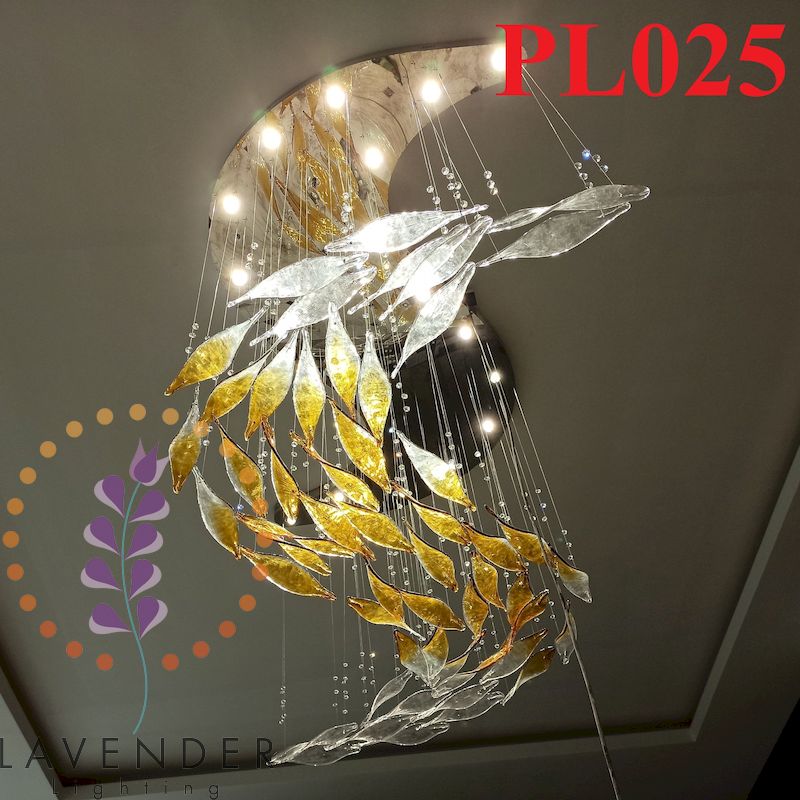 PL025 - Đèn lá thủy tinh lá xoài xoắn uốn lượn